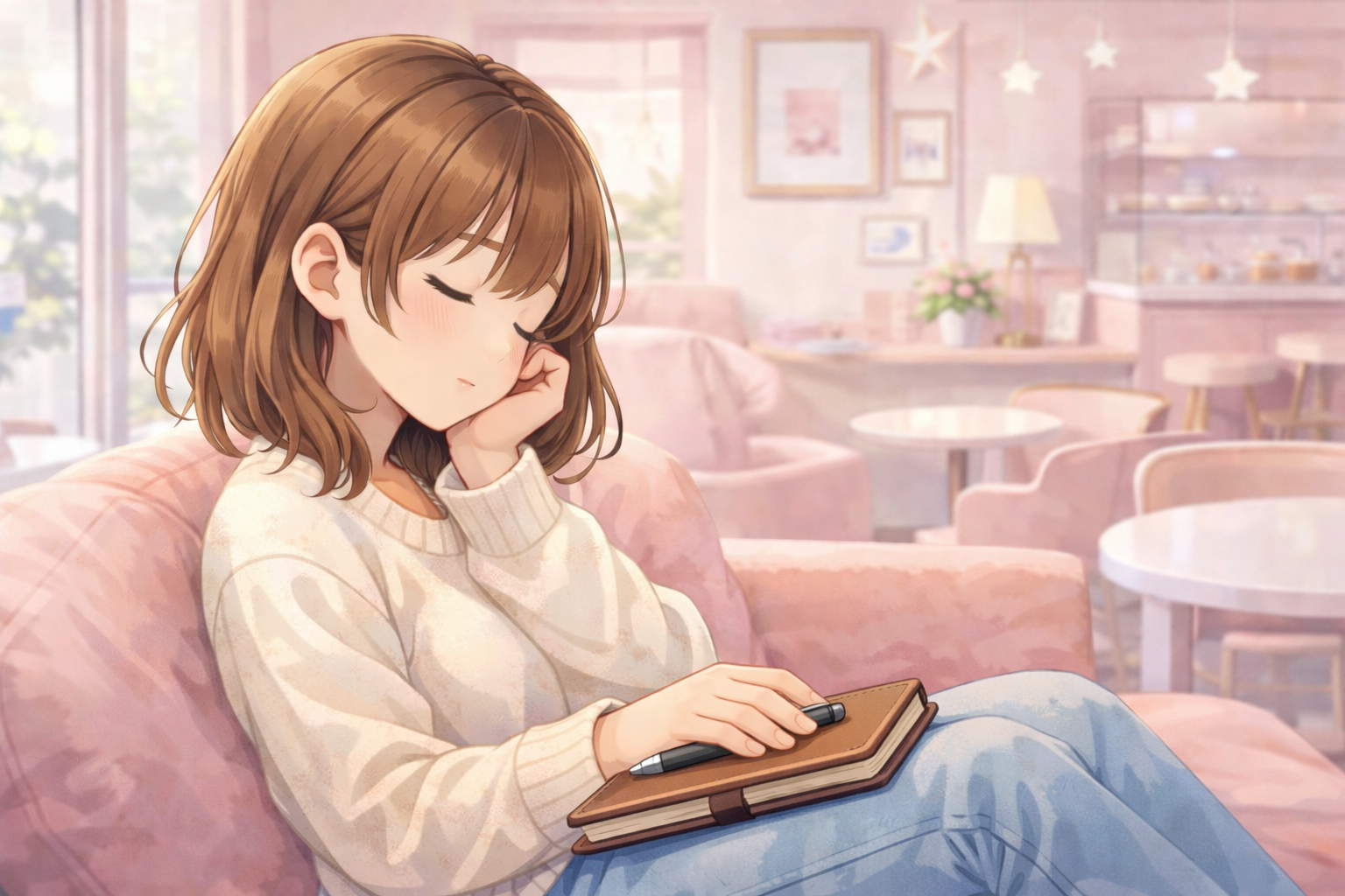 マナはふと立ち上がり、棚に積んでいたアロマキャンドルに火をつけた。ずっと「時間ができたら使おう」と思っていた、もらいものの。やわらかい光が部屋に広がる。お気に入りのハーブティーをいれて、ソファに深く座った。